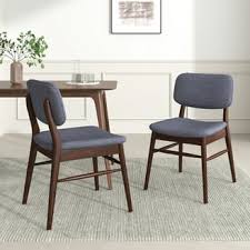 Wooden Dining Chairs Set of 2, Mid Century Modern Kitchen Chairs with Fabric Upholstered and Curved Backrest for Dining Room, Restaurant/Cafe, 300LBS Capacity, Walnut